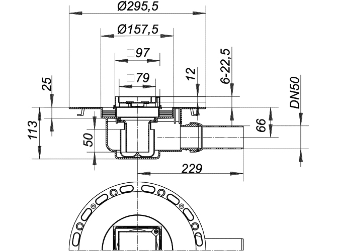 6-22 mm (inkl. Kleber). Ablaufstutzen: