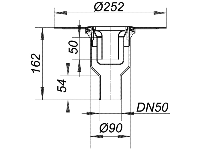 Ablaufstutzen: DN 50 senkrecht