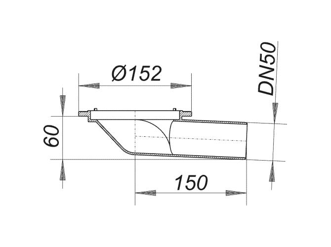 Ablaufstutzen: DN 50, seitlich, 3 Grad