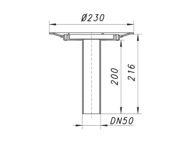 Ablaufstutzen: DN 50, senkrecht