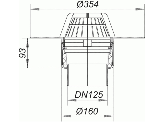 Ablaufstutzen: DN 125 senkrecht,