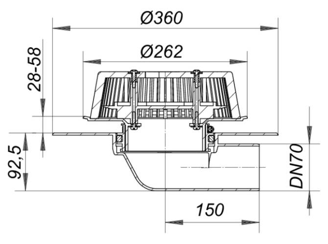 Anstaubereichs. Ablaufstutzen: DN 70