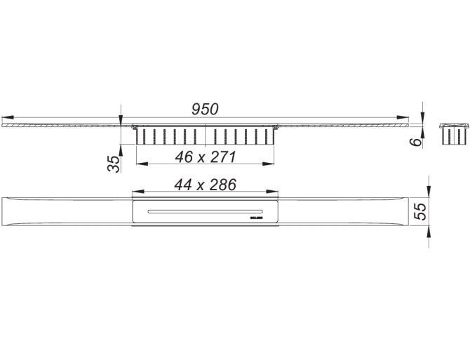 beschichtet messing matt, 6 x 55 x 950