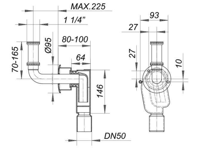 Produktinformationen "DALLMER Wandeinbau-Siphon 300 CR, 1 1/4" x DN 50"