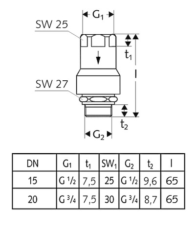 - Abgang: DN 15 G 1/2 AG