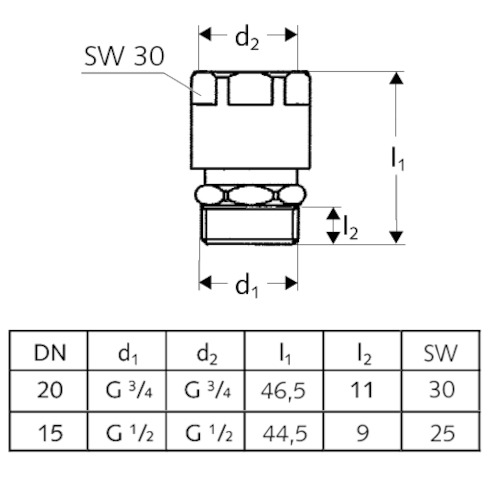 - Abgang: DN 15 G 1/2 IG