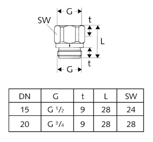 - Abgang: DN 20 G 3/4 AG
