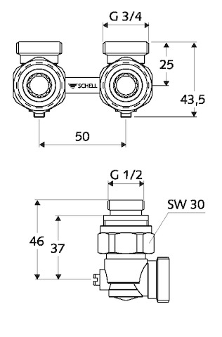 Produktinformationen "SCHELL Doppel-Anschlusshahn für VHK Eckform, absp., G 1/2 IG, mattnickel 142000499"